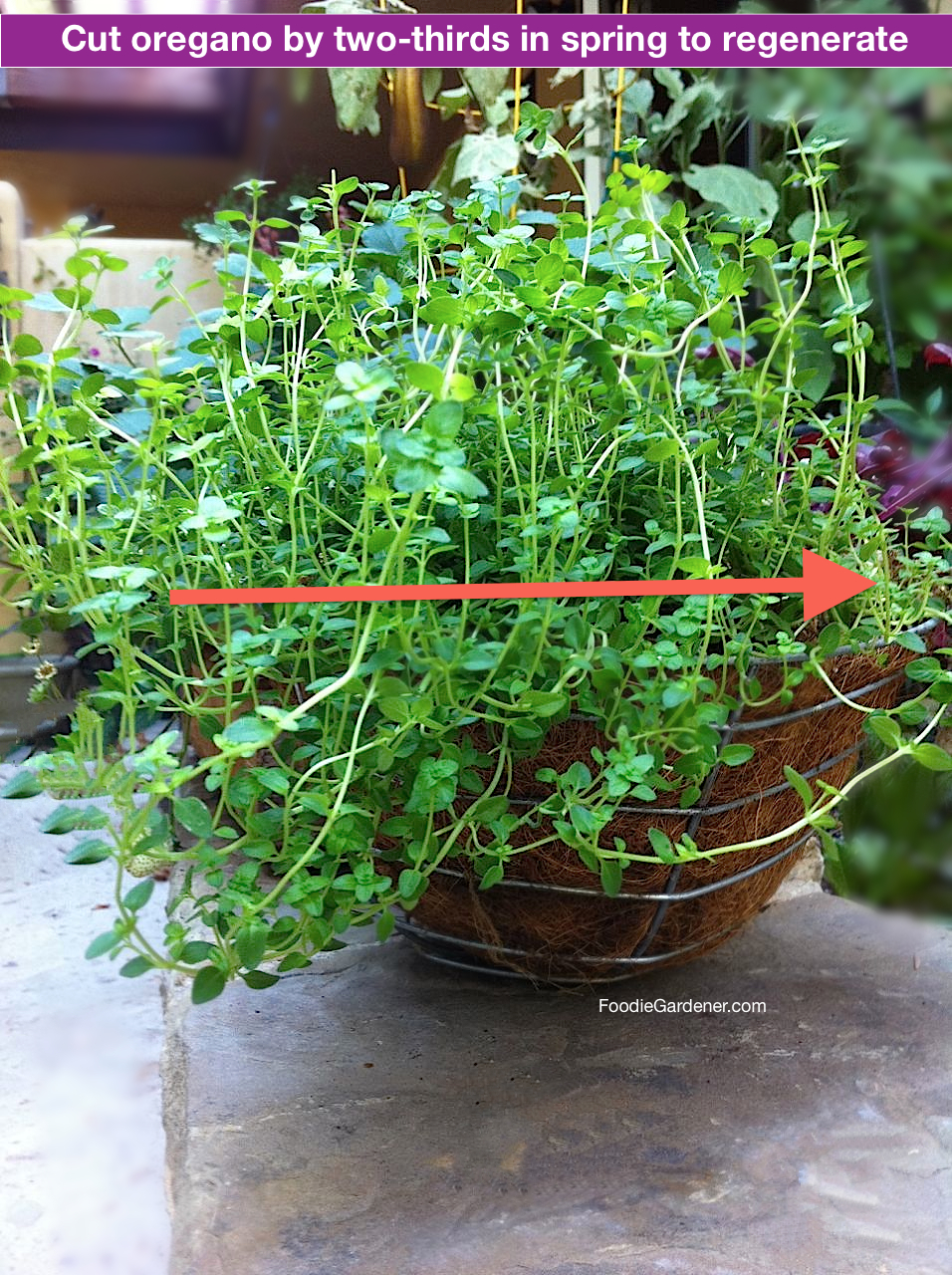 Cut the oregano plant back by two-thirds every year in the spring to regenerate it.